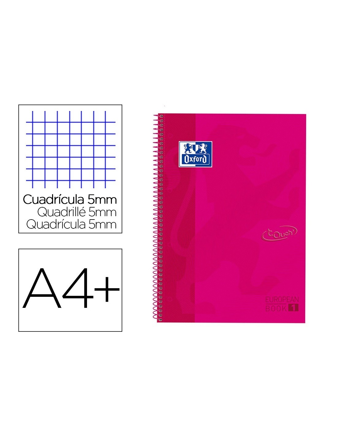 CUADERNO ESPIRAL OXFORD EBOOK 1 TAPA EXTRADURA DIN A4+ 80 H CUADRICULA 5 MM ROSA FRAMBUESA TOUCH