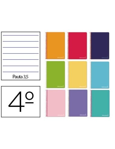 CUADERNO ESPIRAL LIDERPAPEL CUARTO WITTY TAPA DURA 80H 75GR PAUTA ANCHA 3,5MM CON MARGEN COLORES SURTIDOS