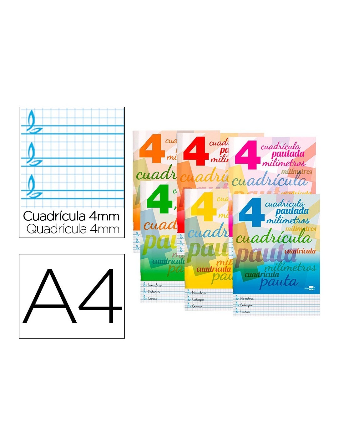 LIBRETA LIDERPAPEL PAUTAGUIA TAPA CARTONCILLO 32 HOJAS DIN A4 70 GR CUADRICULADO PAUTADO 4 MM