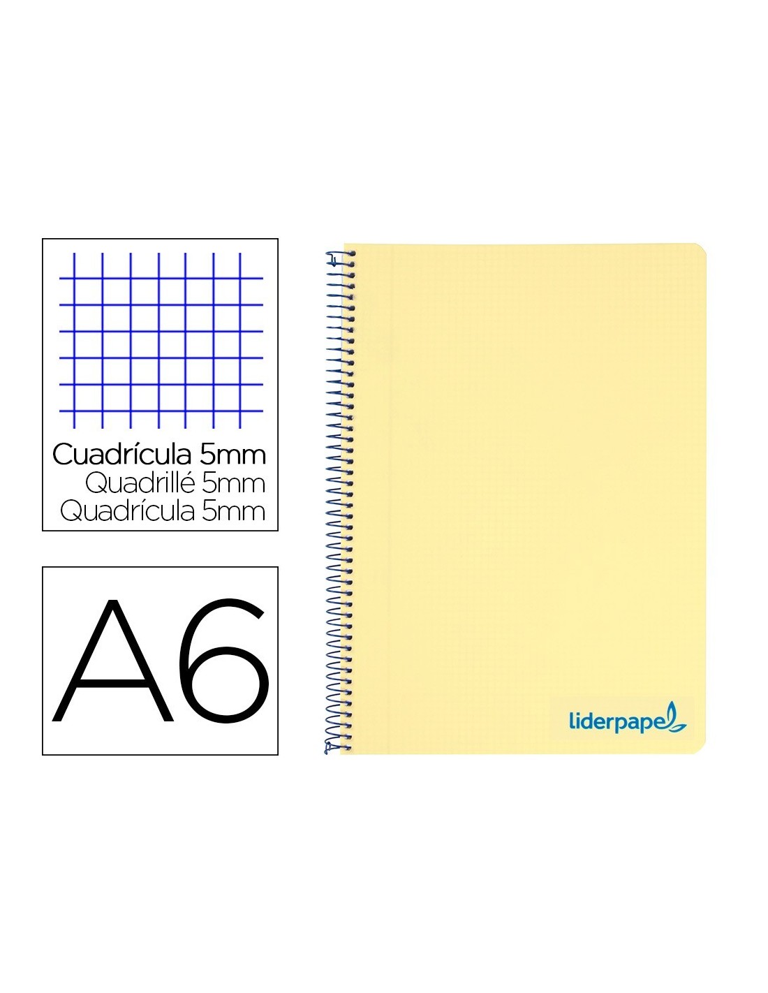 CUADERNO ESPIRAL LIDERPAPEL A6 MICRO WONDER TAPA PLASTICO 120H 90 GR CUADRO 5MM 4 BANDAS COLOR AMARILLO