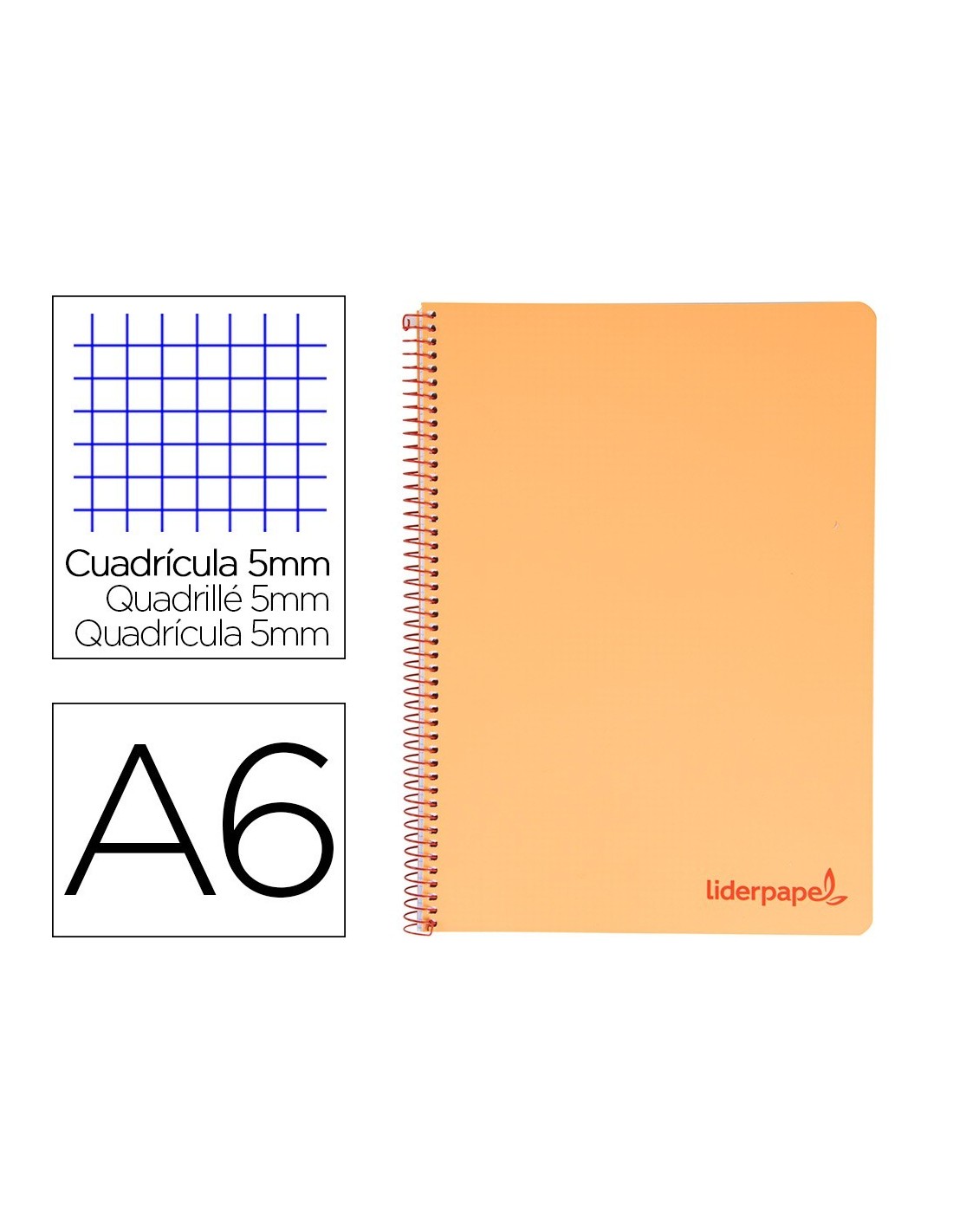 CUADERNO ESPIRAL LIDERPAPEL A6 MICRO WONDER TAPA PLASTICO 120H 90 GR CUADRO 5MM 4 BANDAS COLOR NARANJA