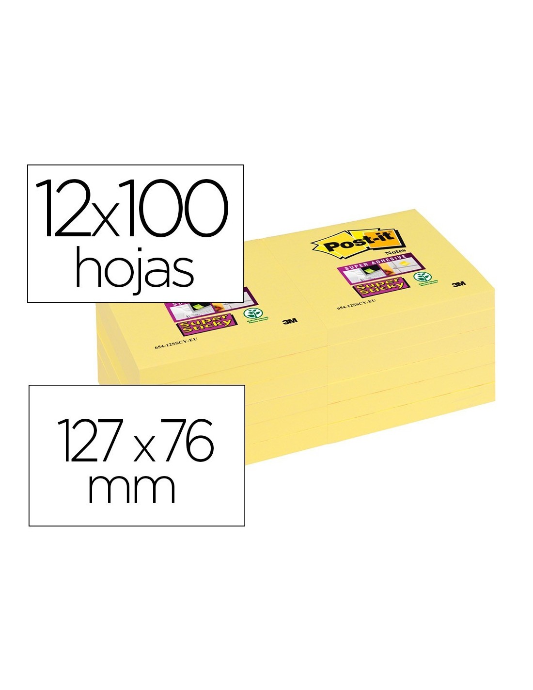 BLOC DE NOTAS ADHESIVAS QUITA Y PON POST-IT SUPER STICKY 76X127 MM CON 12 BLOC AMARILLO CANARIO