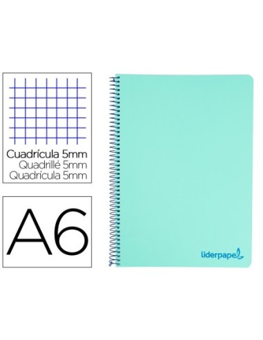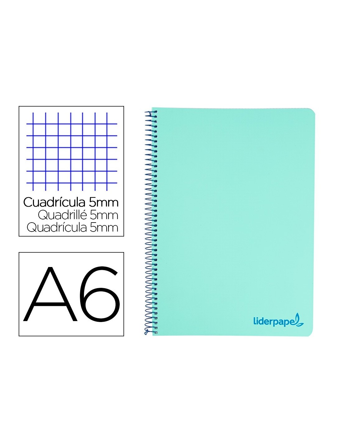CUADERNO ESPIRAL LIDERPAPEL A6 MICRO WONDER TAPA PLASTICO 120H 90 GR CUADRO 5MM 4 BANDAS COLOR VERDE