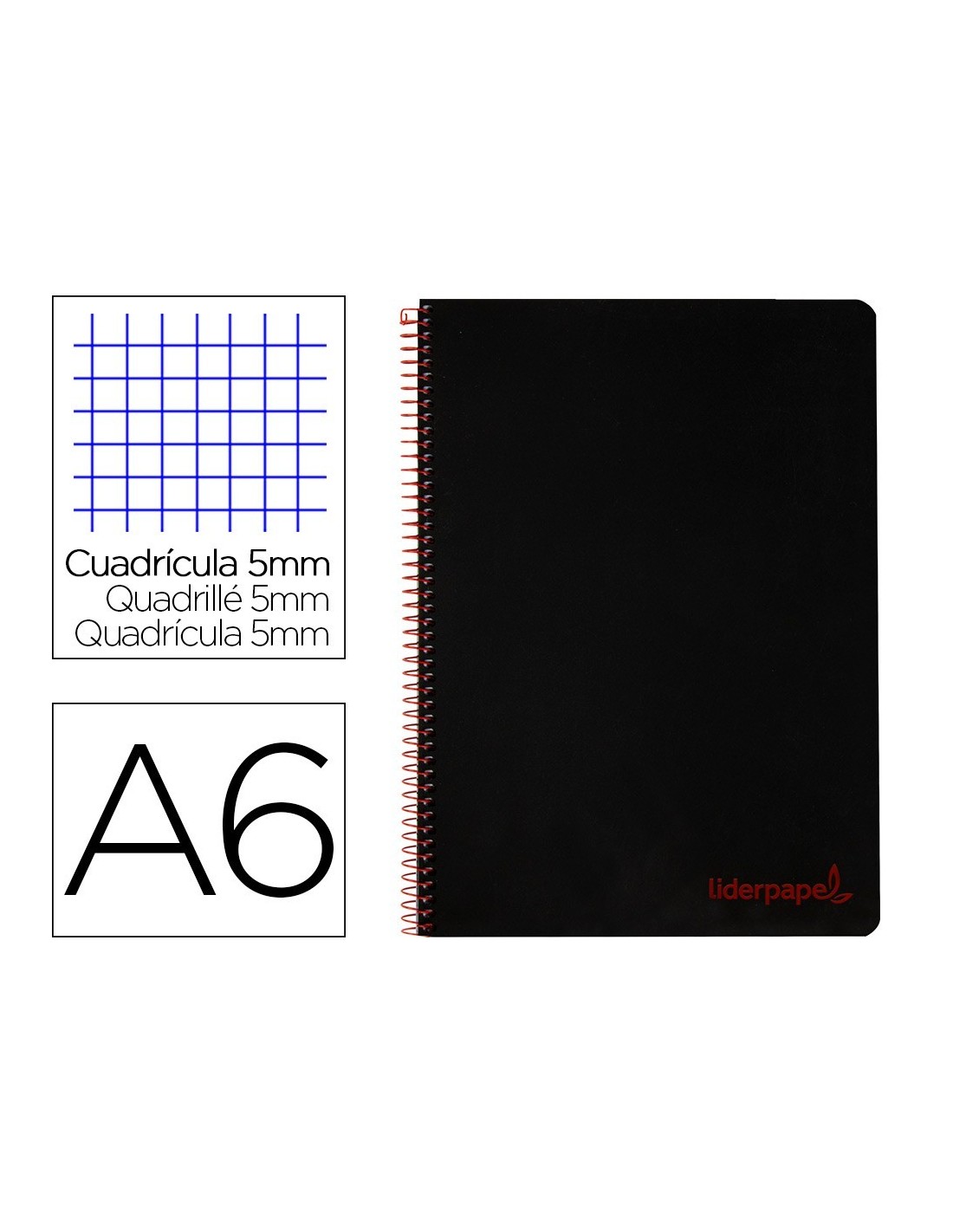 CUADERNO ESPIRAL LIDERPAPEL A6 MICRO WONDER TAPA PLASTICO 120H 90 GR CUADRO 5MM 4 BANDAS COLOR NEGRO