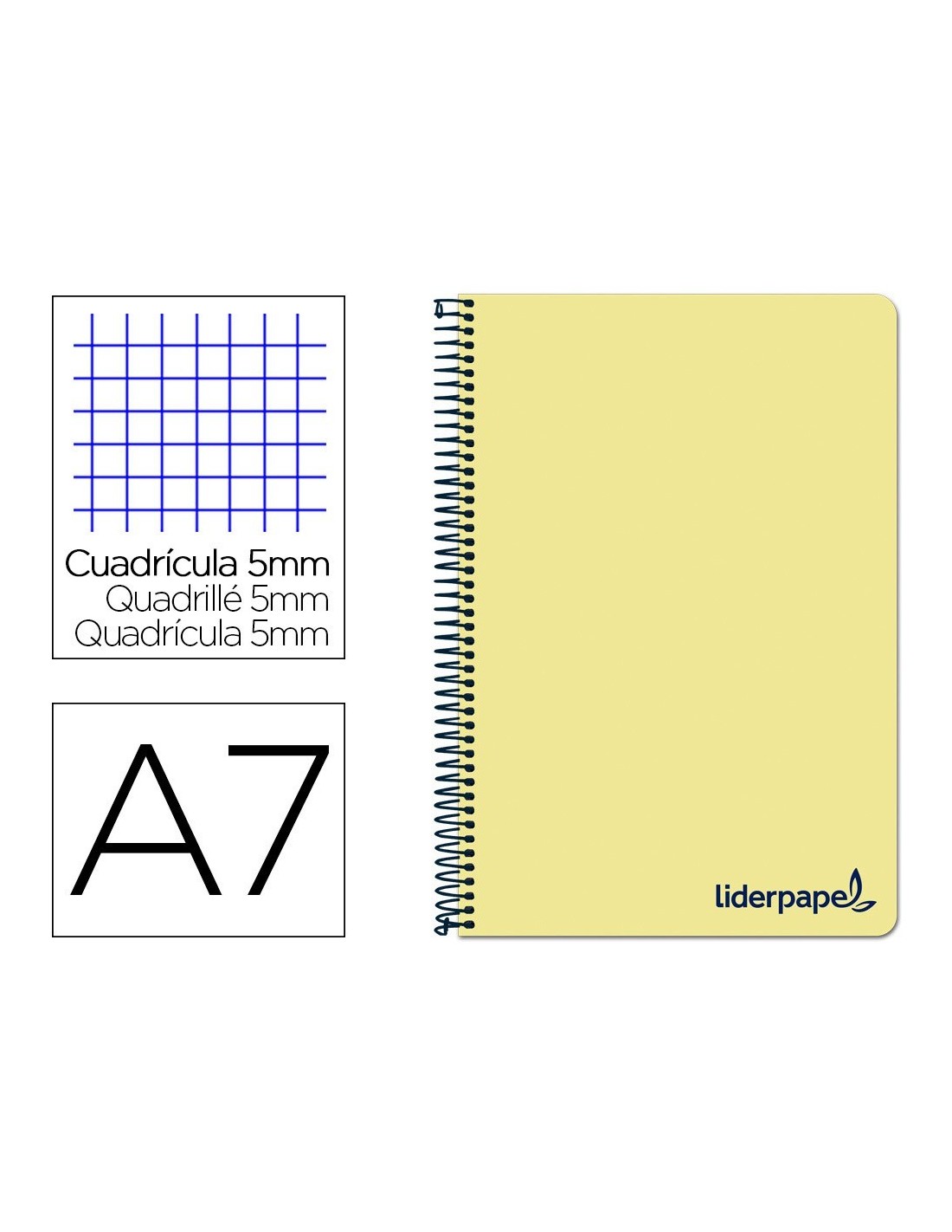 CUADERNO ESPIRAL LIDERPAPEL A7 MICRO WONDER TAPA PLASTICO 100H 90 GR CUADRO 5MM 4 BANDAS COLOR AMARILLO