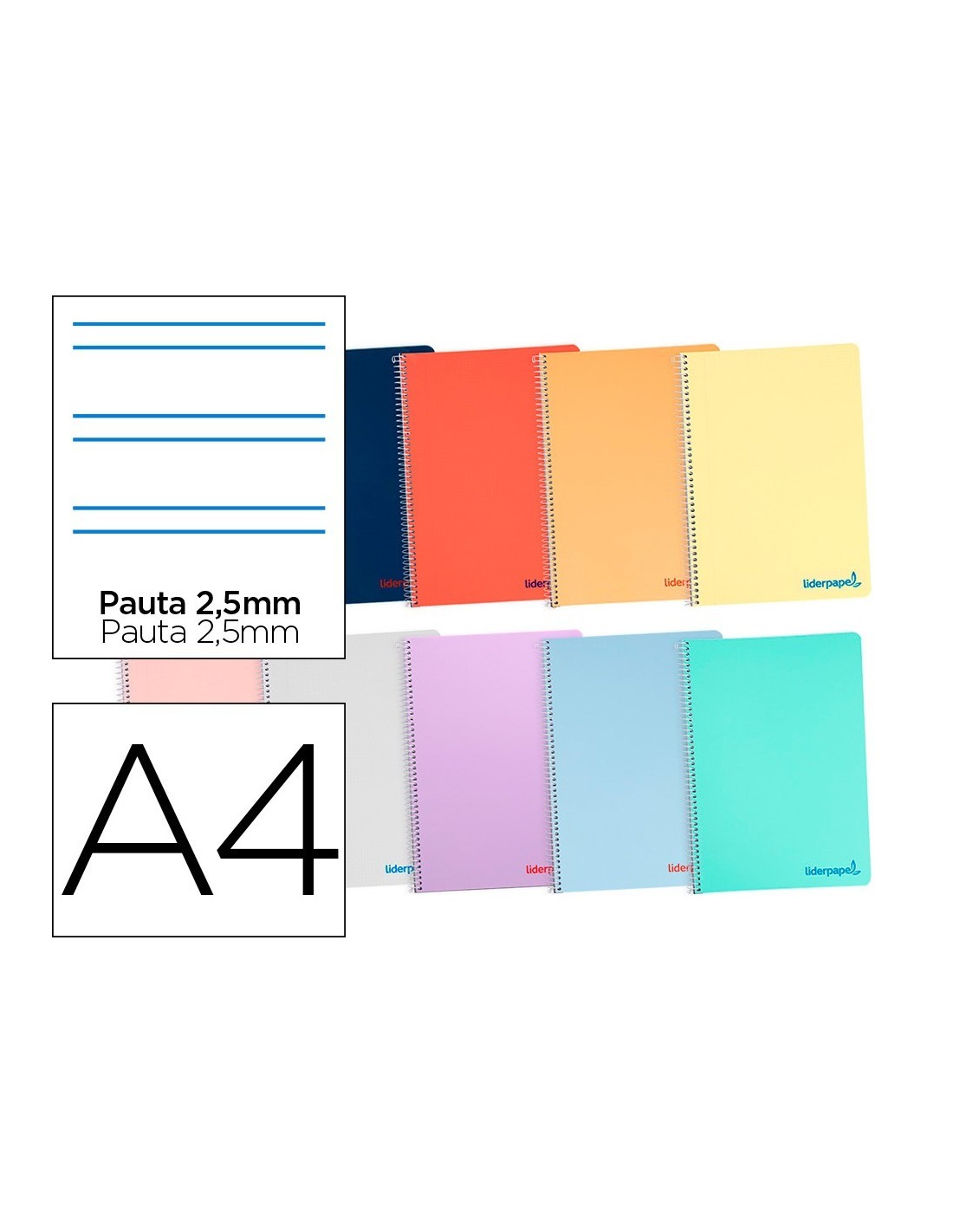 CUADERNO ESPIRAL LIDERPAPEL A4 WONDER TAPA PLASTICO 80H 90GR PAUTA ESTRECHA 2,5MM CON MARGEN COLORES SURTIDOS