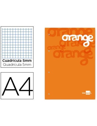 BLOC ENCOLADO LIDERPAPEL CUADRO 5 MM NARANJA A4 NATURAL100 HOJAS 100 G/M2
