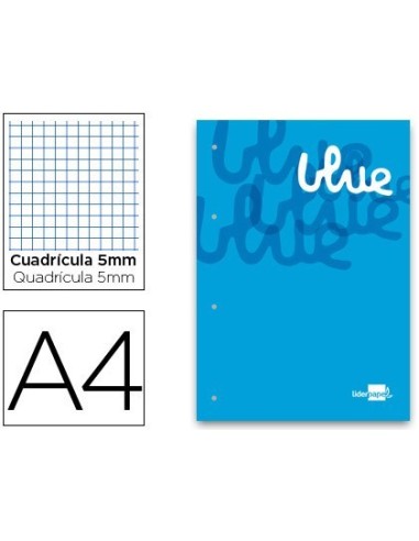BLOC ENCOLADO LIDERPAPEL CUADRO 5 MM AZUL A4 NATURAL 100 HOJAS 100 G/M2