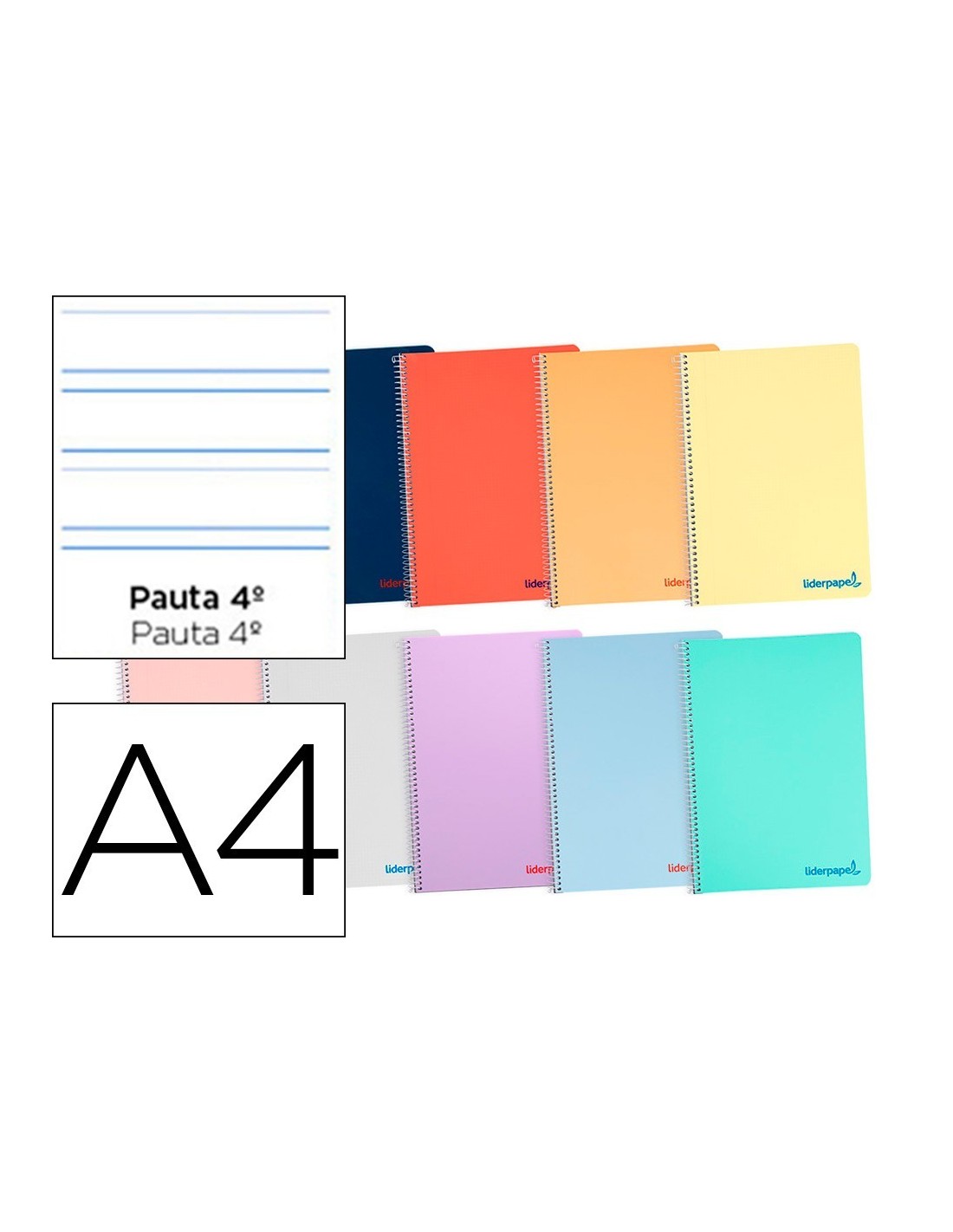 CUADERNO ESPIRAL LIDERPAPEL A4 WONDER TAPA PLASTICO 80H 90GR PAUTA ANCHA 3,5MM CON MARGEN COLORES SURTIDOS