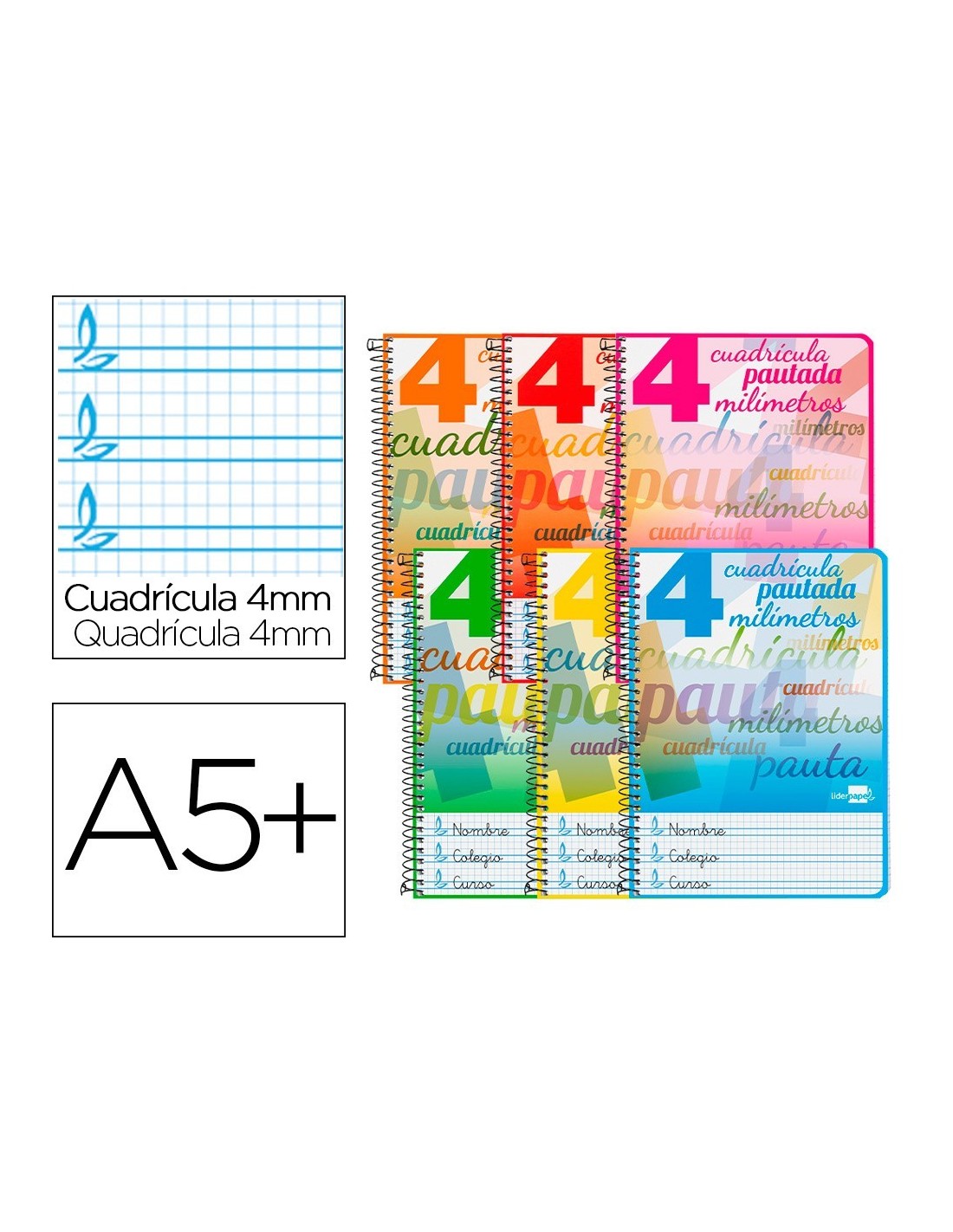 CUADERNO ESPIRAL LIDERPAPEL CUARTO PAUTAGUIA TAPA DURA 80H75 GR CUADRO PAUTADO 4MM CON MARGEN