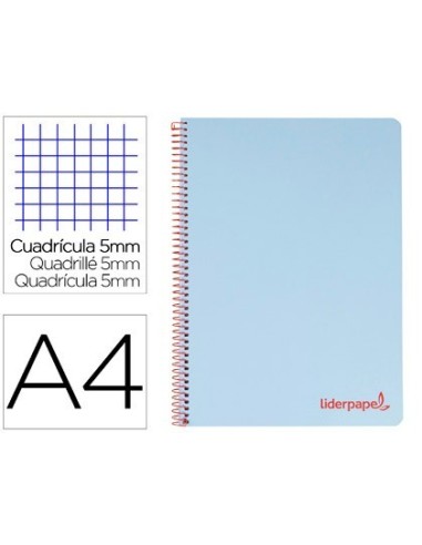 CUADERNO ESPIRAL LIDERPAPEL A4 MICRO WONDER TAPA PLASTICO 120H 90 GR CUADRO 5 MM 5 BANDA4 TALADROS COLOR CELESTE