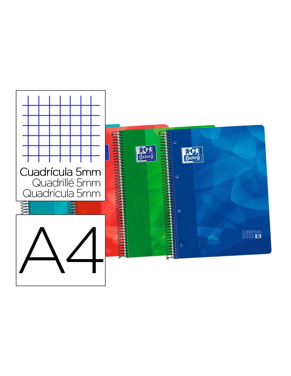 BLOC ESPIRAL OXFORD TAPA PLASTICO OPTIK PAPER MICROPERFORADO DIN A4 120 H 50% HOJAS GRATIS CUADROS 5 MM