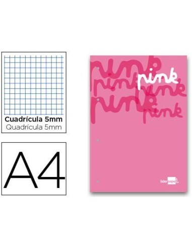 BLOC ENCOLADO LIDERPAPEL CUADRO 5 MM ROSA A4 NATURAL 100 HOJAS 100 G/M2