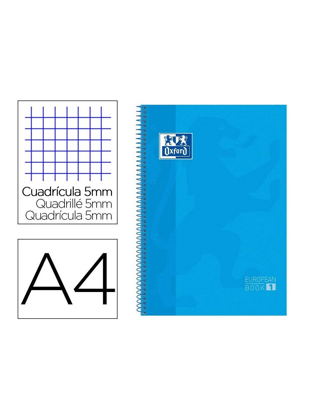 BLOC ESPIRAL OXFORD EUROPEAN BOOK TAPA EXTRADURA DIN A4 80 HOJAS CUADRICULA 5 MM COLOR TURQUESA