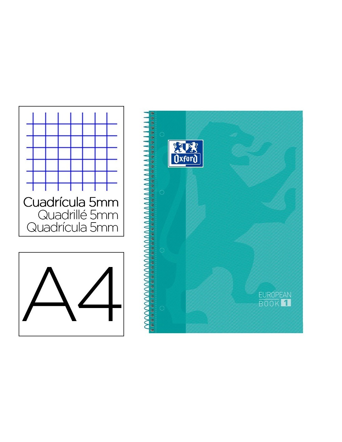 BLOC ESPIRAL OXFORD TAPA EXTRADURA MICROPERFORADO DIN A4 80 HOJAS CUADROS 5 MM COLOR MENTA HIELO