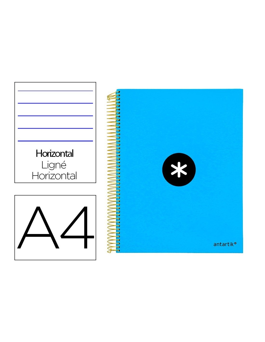 CUADERNO ESPIRAL LIDERPAPEL A4 MICRO ANTARTIK TAPA FORRADA 120H 100 GR HORIZONTAL 5 BANDAS 4 TALADROS COLOR AZUL