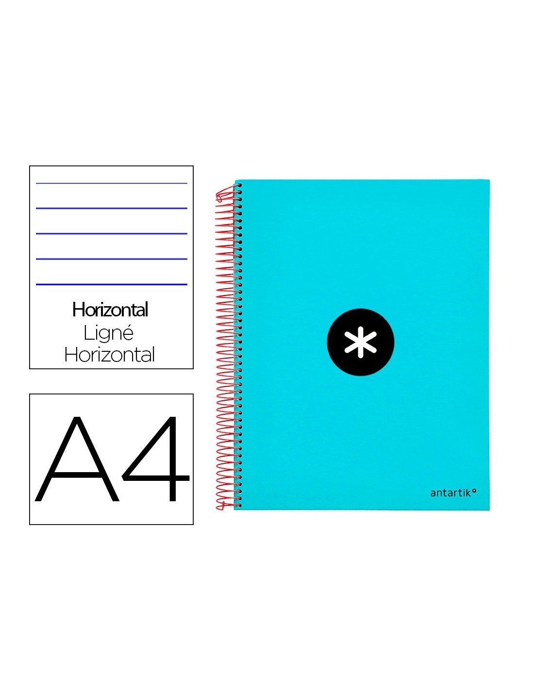 CUADERNO ESPIRAL LIDERPAPEL A4 MICRO ANTARTIK TAPA FORRADA 120H 100 GR HORIZONTAL 5 BANDAS 4 TALADROS COLOR TURQUESA