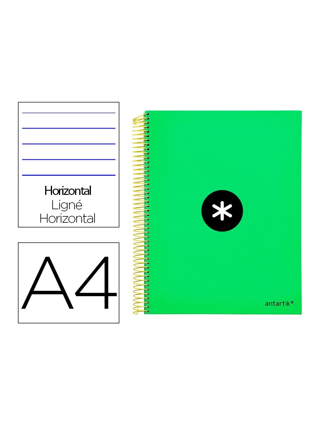 CUADERNO ESPIRAL LIDERPAPEL A4 MICRO ANTARTIK TAPA FORRADA 120H 100 GR HORIZONTAL 5 BANDAS 4 TALADROS COLOR VERDE
