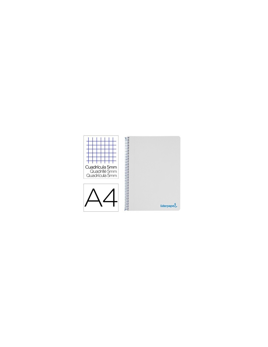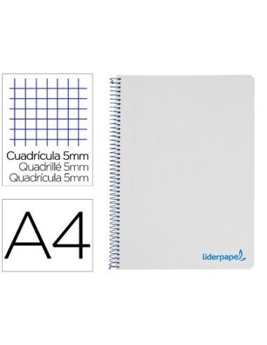 CUADERNO ESPIRAL LIDERPAPEL A4 MICRO WONDER TAPA PLASTICO 120H 90 GR CUADRO 5 MM 5 BANDAS 4 TALADROS COLOR GRIS