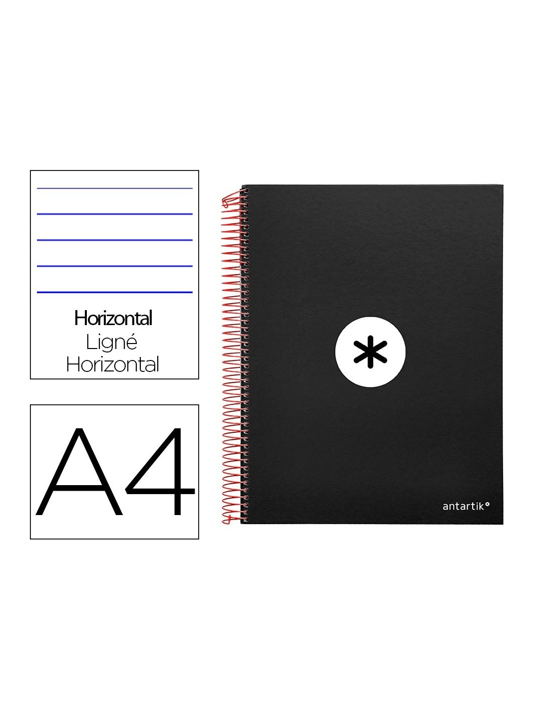 CUADERNO ESPIRAL LIDERPAPEL A4 MICRO ANTARTIK TAPA FORRADA 120H 100 GR HORIZONTAL 5 BANDAS 4 TALADROS COLOR NEGRO
