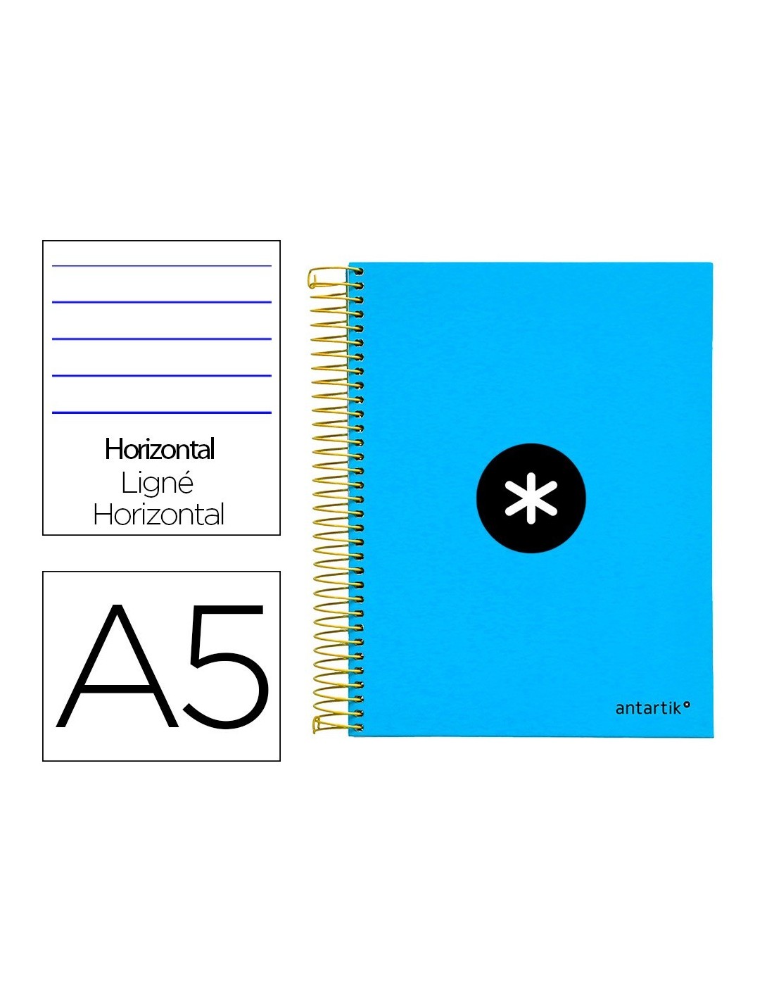 CUADERNO ESPIRAL LIDERPAPEL A5 MICRO ANTARTIK TAPA FORRADA 120H 100 GR HORIZONTAL 5 BANDAS 6 TALADROS COLOR AZUL