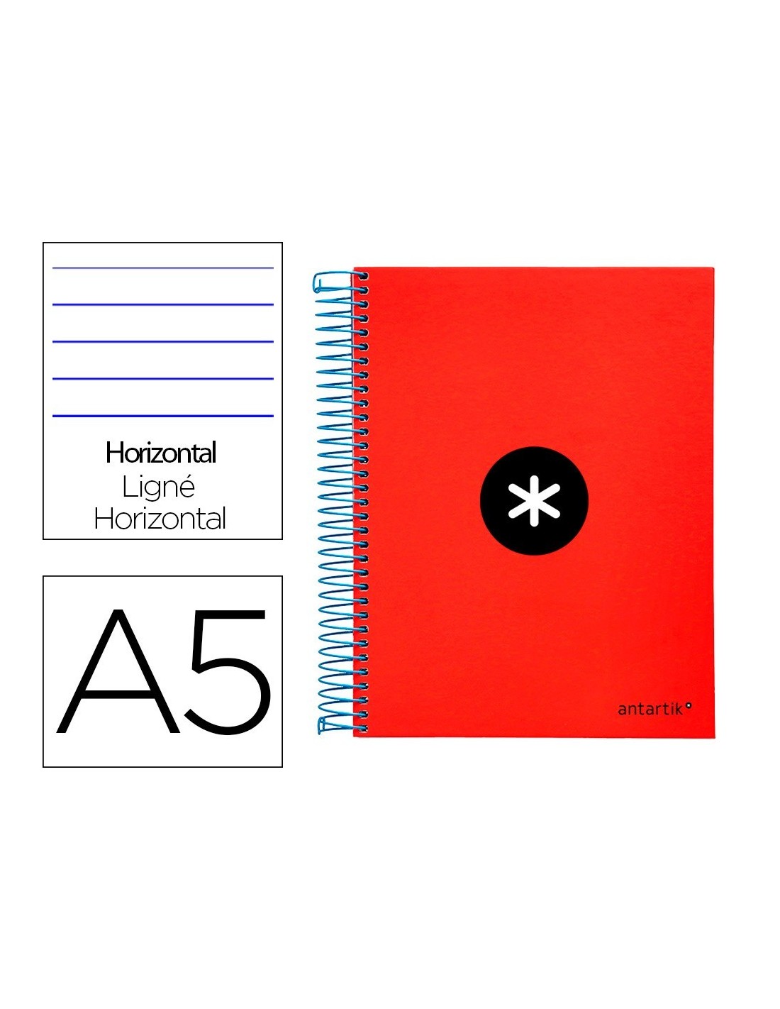 CUADERNO ESPIRAL LIDERPAPEL A5 MICRO ANTARTIK TAPA FORRADA 120H 100 GR HORIZONTAL 5 BANDAS 6 TALADROS COLOR ROJO.