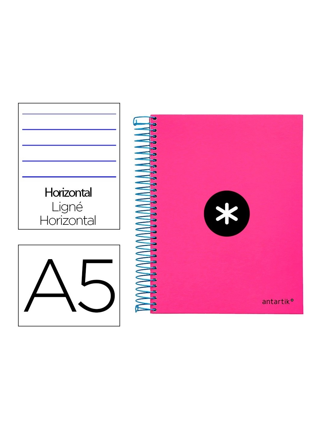 CUADERNO ESPIRAL LIDERPAPEL A5 MICRO ANTARTIK TAPA FORRADA 120H 100 GR HORIZONTAL 5 BANDAS 6 TALADROS COLOR ROSA