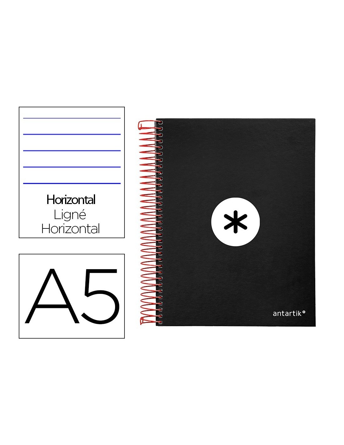 CUADERNO ESPIRAL LIDERPAPEL A5 MICRO ANTARTIK TAPA FORRADA 120H 100 GR HORIZONTAL 5 BANDAS 6 TALADROS COLOR NEGRO