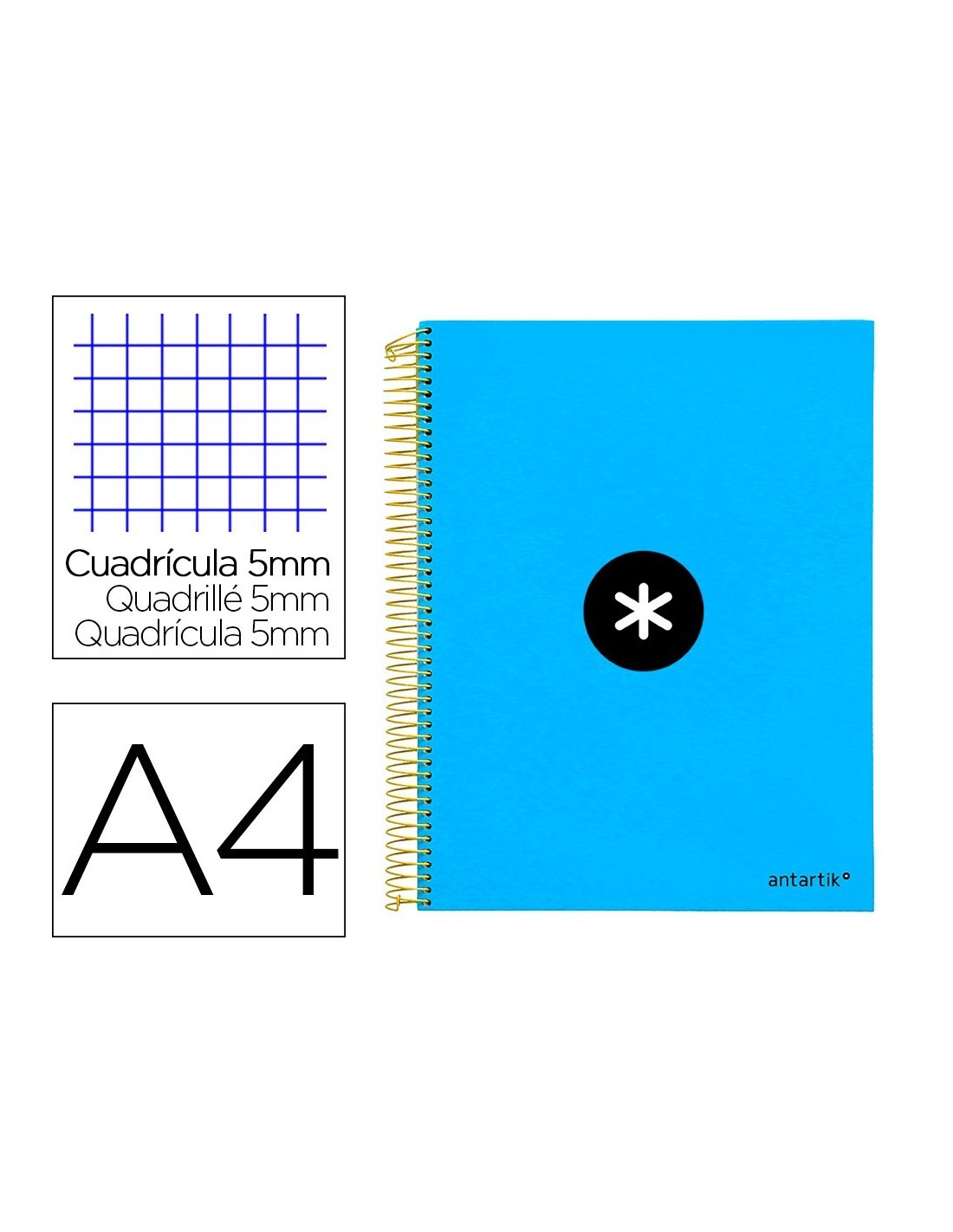 CUADERNO ESPIRAL LIDERPAPEL A4 MICRO ANTARTIK TAPA FORRADA120H 100 GR CUADRO 5MM 5 BANDA4 TALADROS COLOR AZUL