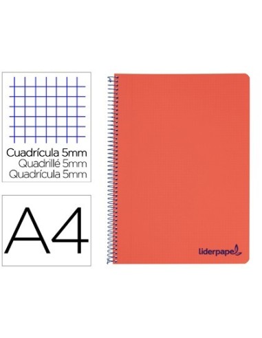 CUADERNO ESPIRAL LIDERPAPEL A4 MICRO WONDER TAPA PLASTICO 120H 90 GR CUADRO 5 MM 5 BANDAS 4 TALADROS COLOR ROJO