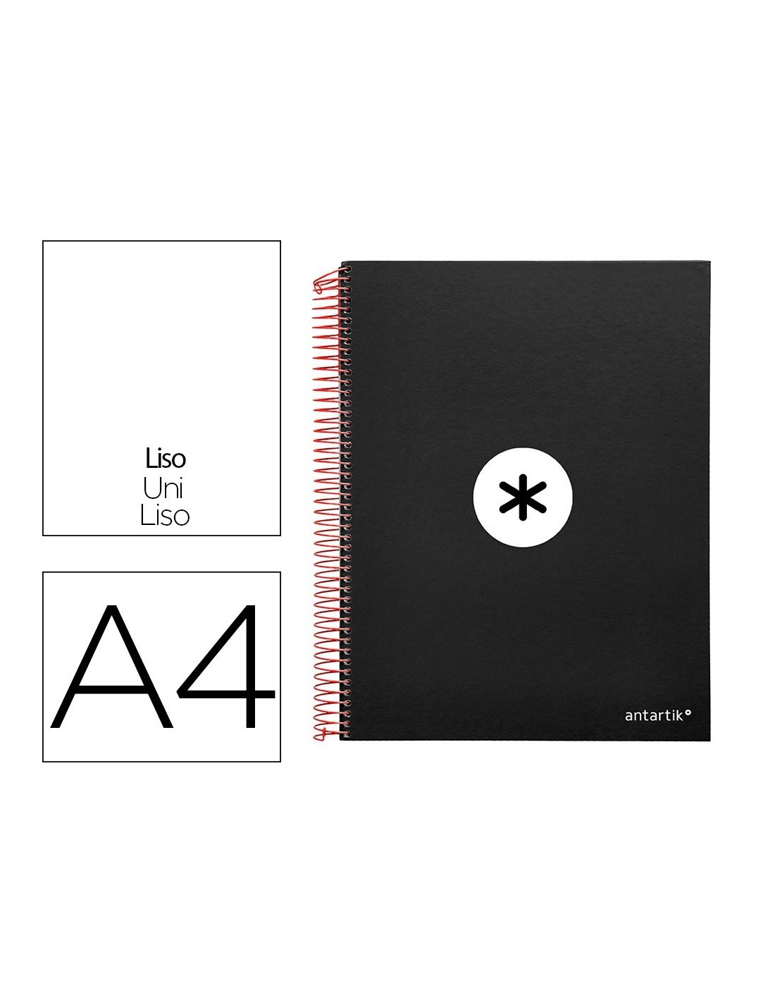 CUADERNO ESPIRAL LIDERPAPEL A4 MICRO ANTARTIK TAPA FORRADA 120H 100 GR LISO CON BANDAS 4 TALADROS COLOR NEGRO