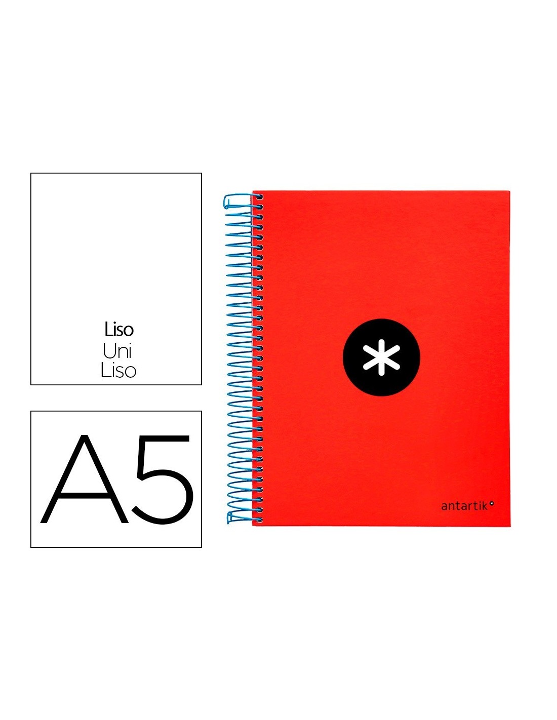 CUADERNO ESPIRAL LIDERPAPEL A5 MICRO ANTARTIK TAPA FORRADA 120H 100G LISO CON BANDAS 6 TALADROS COLOR ROJO