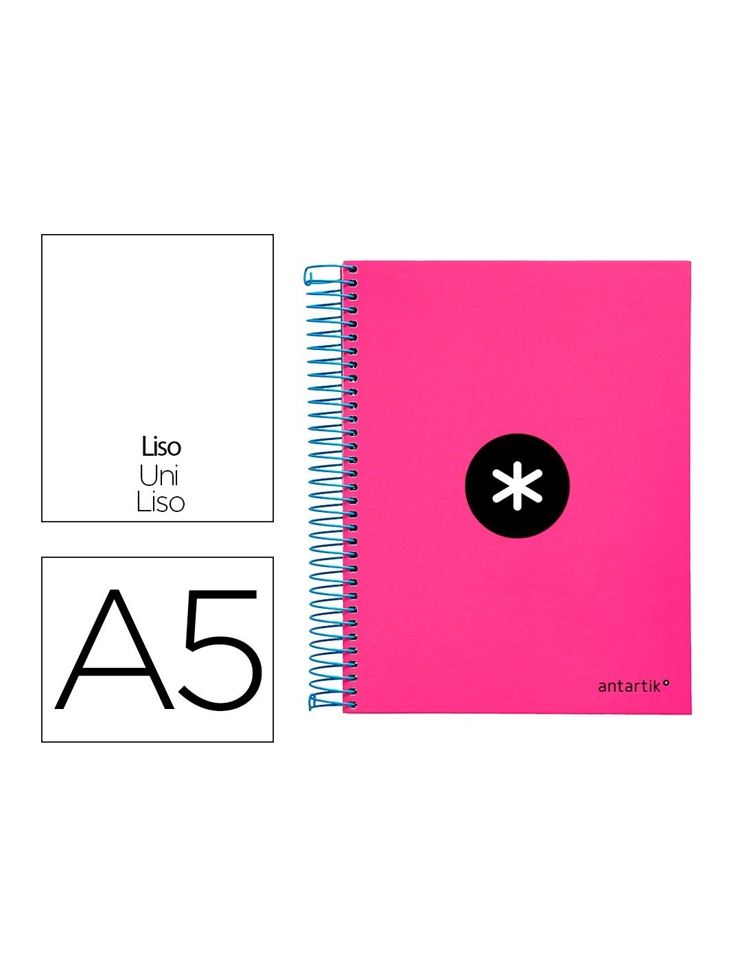 CUADERNO ESPIRAL LIDERPAPEL A5 MICRO ANTARTIK TAPA FORRADA 120H 100 GR LISO CON BANDAS 6 TALADROS COLOR ROSA FLUOR