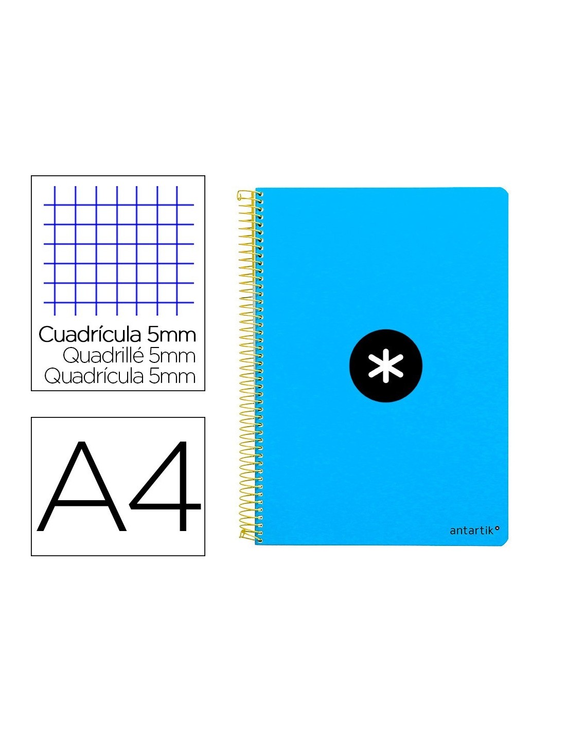 CUADERNO ESPIRAL LIDERPAPEL A4 MICRO ANTARTIK TAPA DURA 80H 100 GR CUADRO 5MM SIN BANDAS 4 TALADROS COLOR AZUL