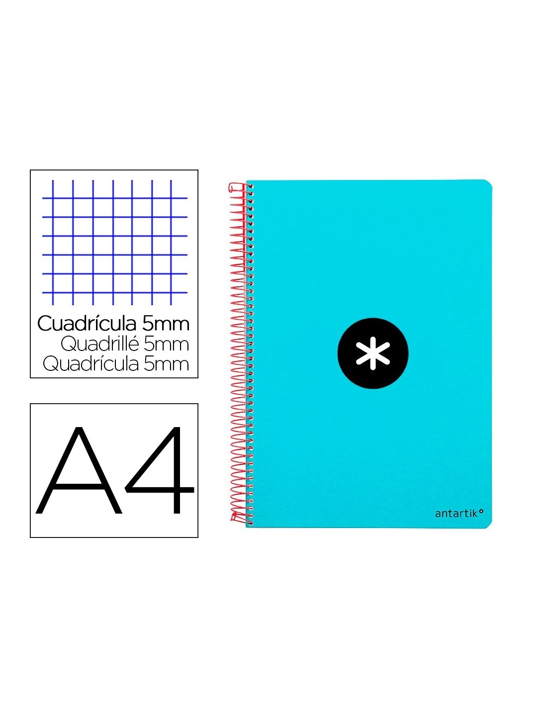 CUADERNO ESPIRAL LIDERPAPEL A4 MICRO ANTARTIK TAPA DURA 80H 100 GR CUADRO 5MM SIN BANDAS 4 TALADROS COLOR TURQUESA