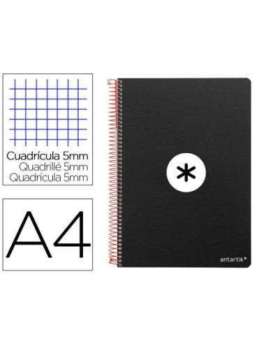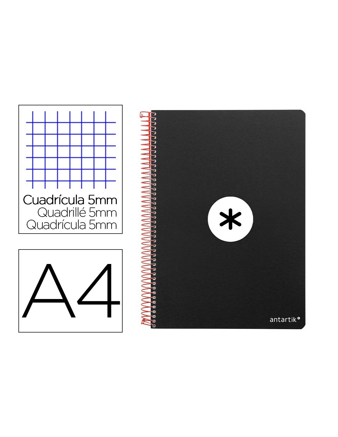 CUADERNO ESPIRAL LIDERPAPEL A4 MICRO ANTARTIK TAPA DURA 80H 100 GR CUADRO 5MM SIN BANDAS 4 TALADROS COLOR NEGRO