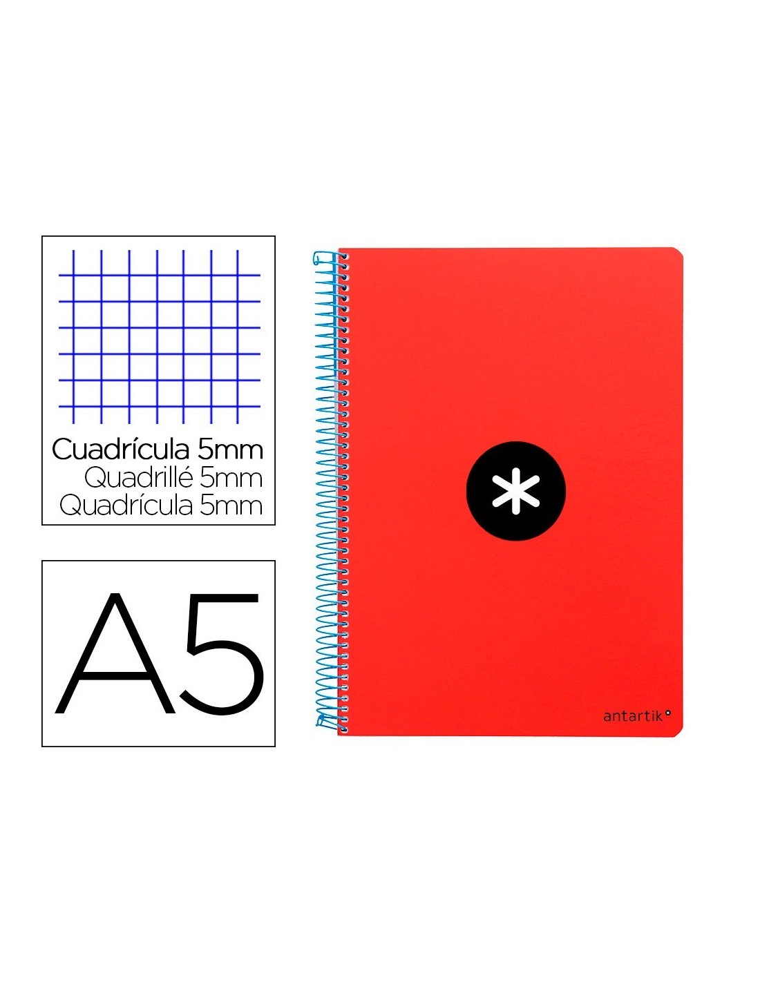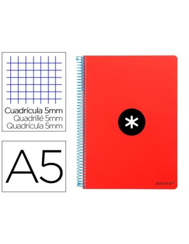 CUADERNO ESPIRAL LIDERPAPEL A5 ANTARTIK TAPA DURA 80H 100 GR CUADRO 5MM CON MARGEN COLOR ROJO
