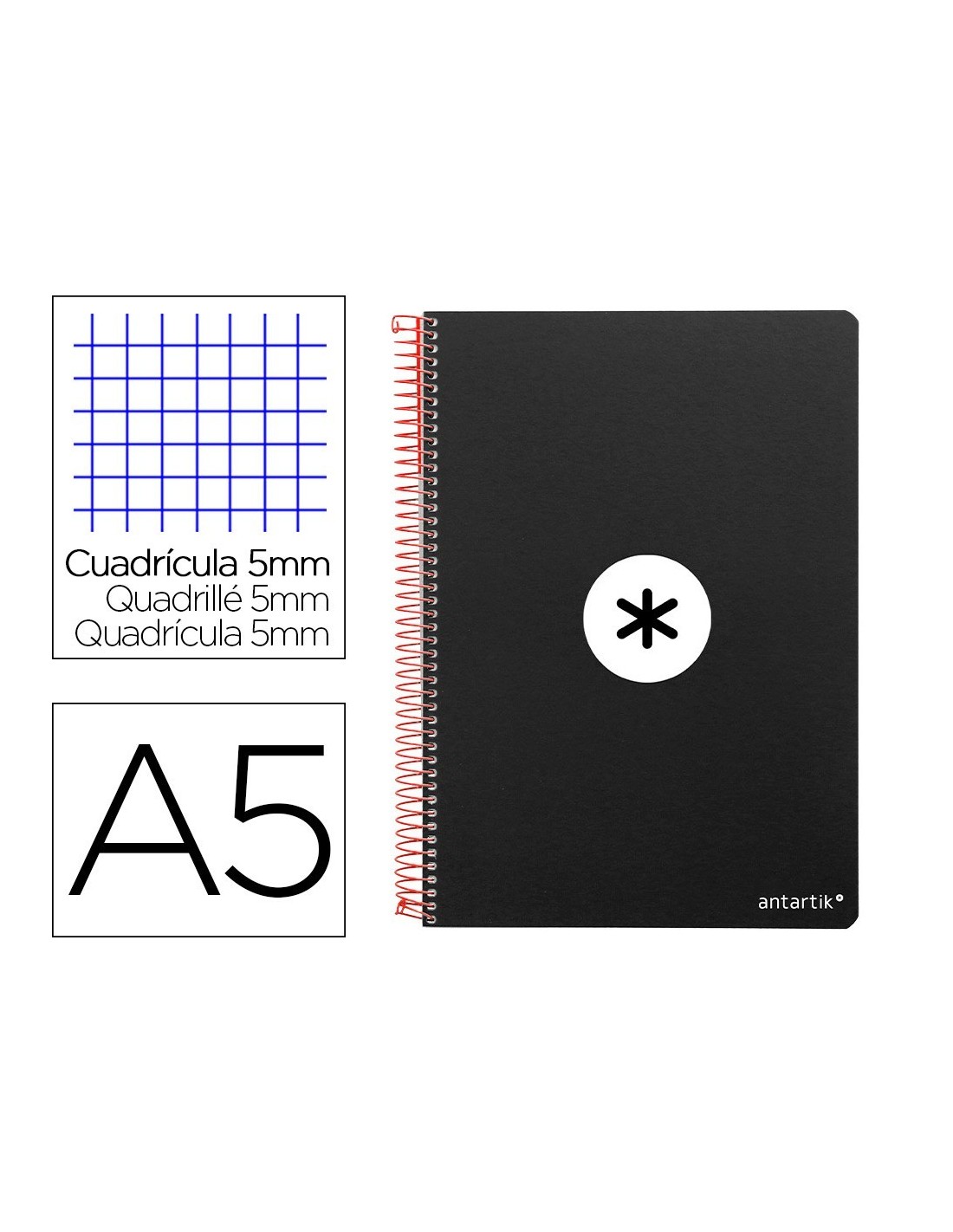 CUADERNO ESPIRAL LIDERPAPEL A5 ANTARTIK TAPA DURA 80H 100 GR CUADRO 5MM CON MARGEN COLOR NEGRO