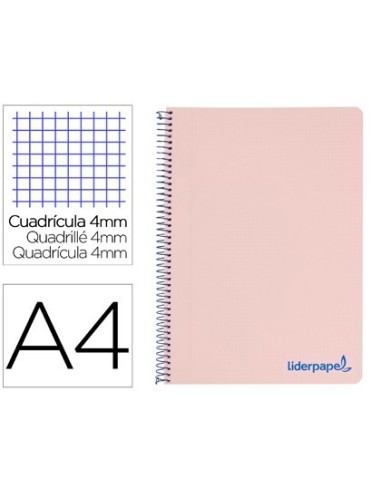 CUADERNO ESPIRAL LIDERPAPEL A4 WONDER TAPA PLASTICO 80H 90GR CUADRO 4MM CON MARGEN COLOR ROSA