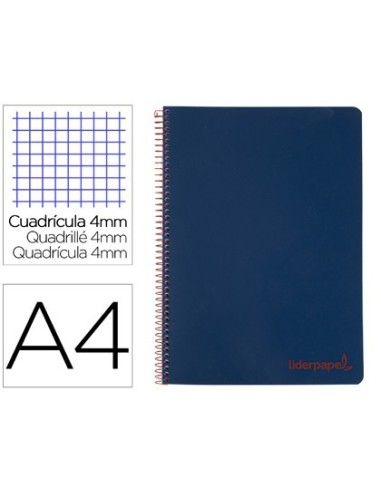 CUADERNO ESPIRAL LIDERPAPEL A4 WONDER TAPA PLASTICO 80H 90GR CUADRO 4MM CON MARGEN COLOR AZUL MARINO