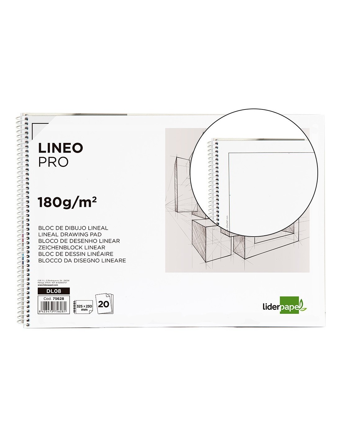 BLOC DIBUJO LIDERPAPEL LINEAL ESPIRAL 230X325MM 20 HOJAS 180 G/M2 CON RECUADRO PERFORADO