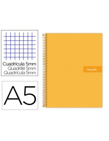 CUADERNO ESPIRAL LIDERPAPEL A5 MICRO CRAFTY TAPA FORRADA 120H 90 GR CUADRO 5MM 5 BANDAS6 TALADROS COLOR NARANJA