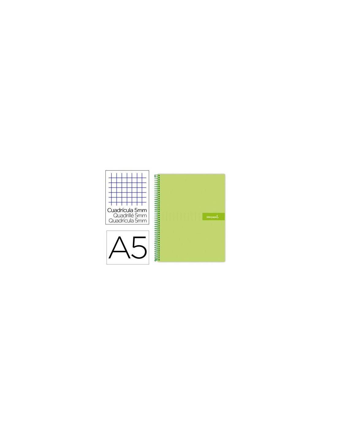 CUADERNO ESPIRAL LIDERPAPEL A5 MICRO CRAFTY TAPA FORRADA 120H 90 GR CUADRO 5MM 5 BANDAS6 TALADROS COLOR VERDE