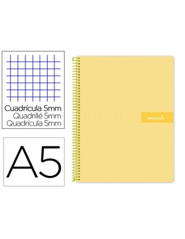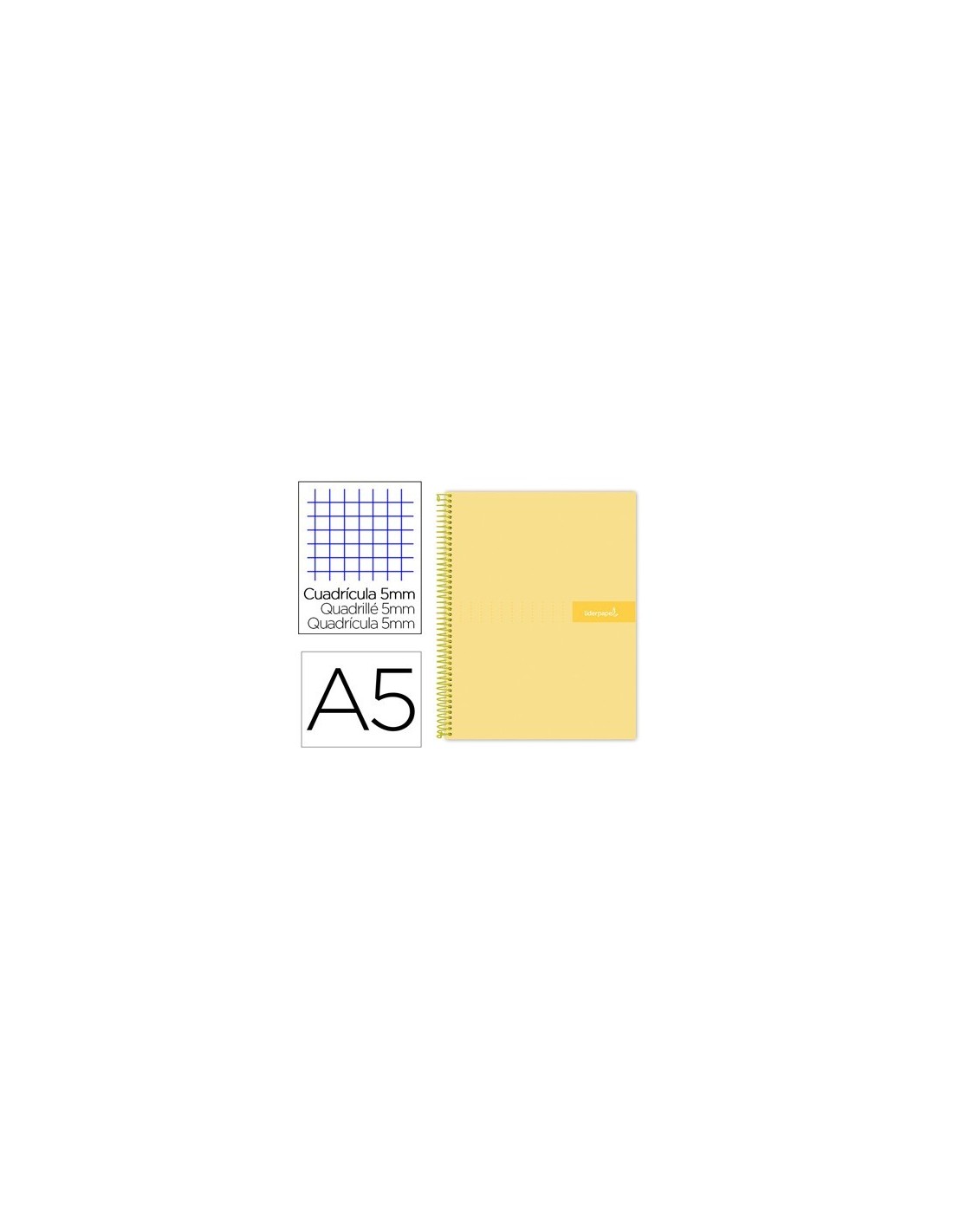 CUADERNO ESPIRAL LIDERPAPEL A5 MICRO CRAFTY TAPA FORRADA 120H 90 GR CUADRO 5MM 5 BANDAS6 TALADROS COLOR AMARILLO