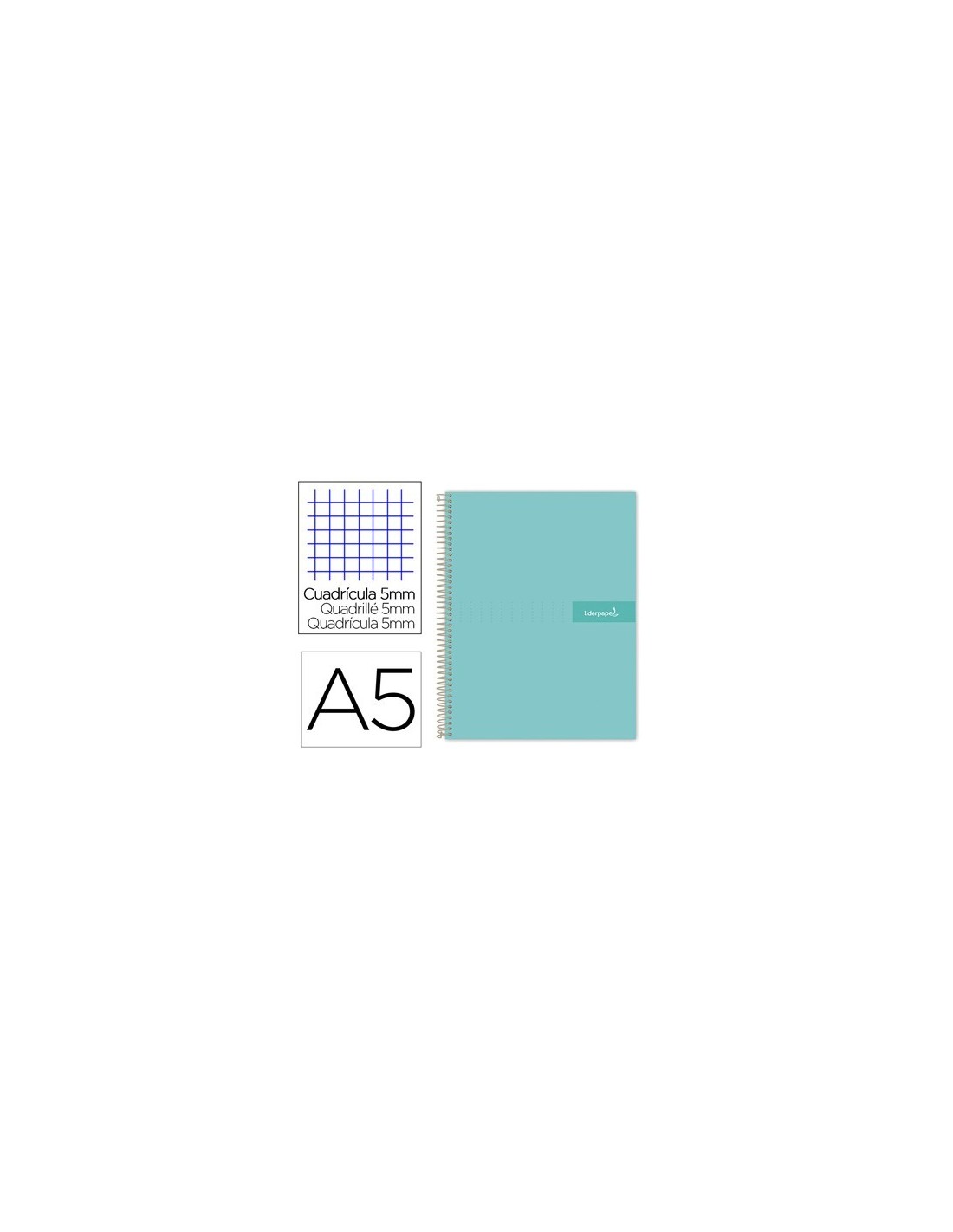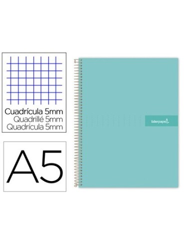 CUADERNO ESPIRAL LIDERPAPEL A5 MICRO CRAFTY TAPA FORRADA 120H 90 GR CUADRO 5MM 5 BANDAS6 TALADROS COLOR TURQUESA