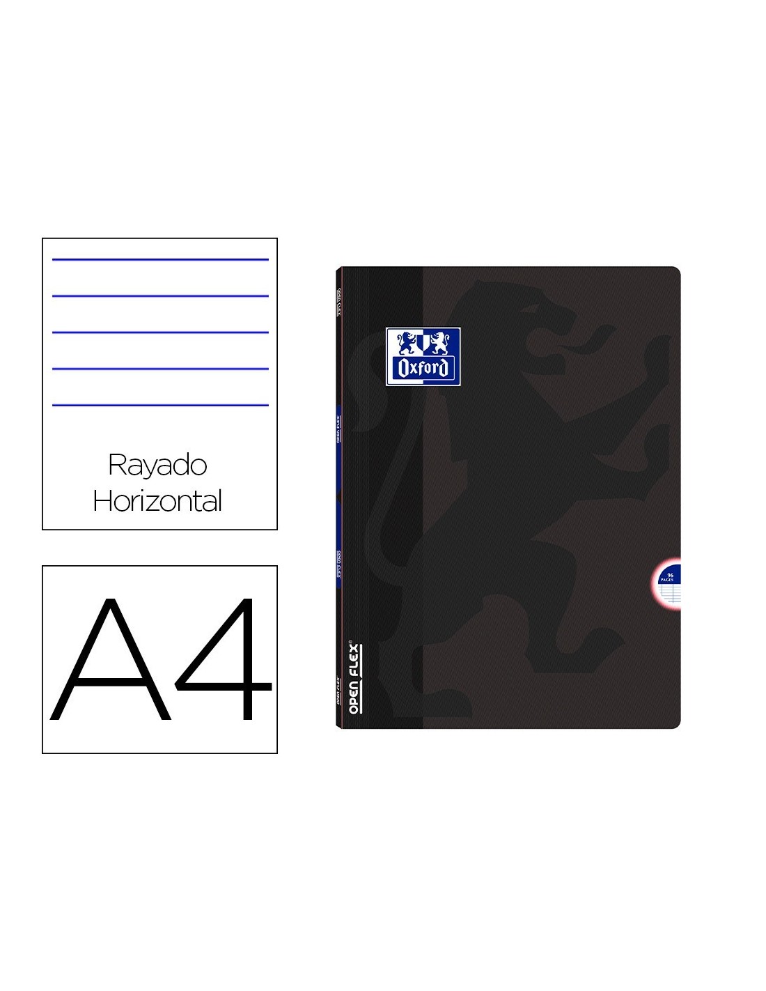LIBRETA ESCOLAR OXFORD OPENFLEX TAPA FLEXIBLE OPTIK PAPER 48 HOJAS DIN A4 RAYADO HORIZONTAL COLOR NEGRO