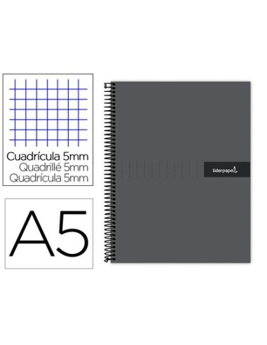 CUADERNO ESPIRAL LIDERPAPEL A5 MICRO CRAFTY TAPA FORRADA 120H 90 GR CUADRO 5MM 5 BANDAS6 TALADROS COLOR NEGRO