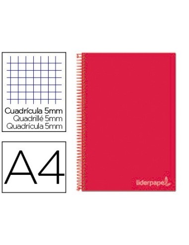 CUADERNO ESPIRAL LIDERPAPEL A4 MICRO JOLLY TAPA FORRADA 140H 75 GR CUADRO 5MM 5 BANDAS 4 TALADROS COLOR ROJO