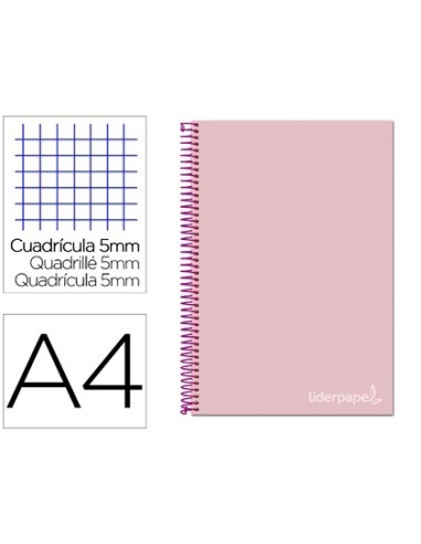 CUADERNO ESPIRAL LIDERPAPEL A4 MICRO JOLLY TAPA FORRADA 140H 75 GR CUADRO 5MM 5 BANDAS 4 TALADROS COLOR ROSA