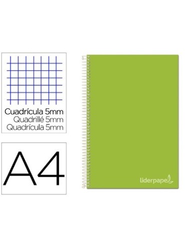 CUADERNO ESPIRAL LIDERPAPEL A4 MICRO JOLLY TAPA FORRADA 140H 75 GR CUADRO 5MM 5 BANDAS 4 TALADROS COLOR VERDE